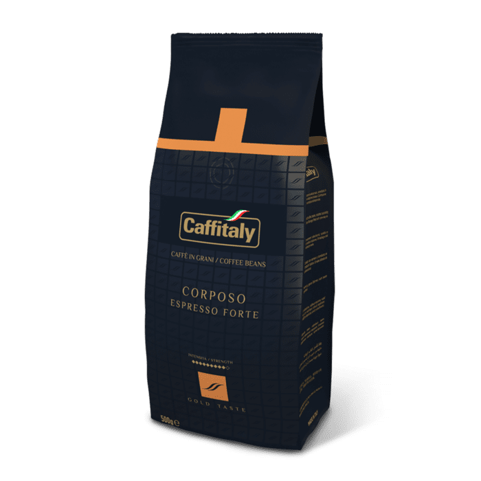 Café en grano de tueste italiano de marca Caffitaly. Un café con carácter, que aporta cuerpo a cualquier bebida sola o con leche, de gran intensidad y color.